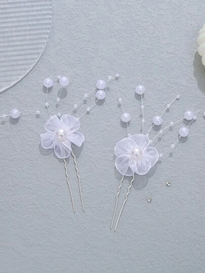 Hårspänne Pärlor Brud Huvudbonader - Vitt - Visa 1