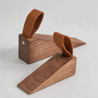2pcs Nordic Style Wooden Door Stoppers, Innovative Design To Prevent Door Jamming. Movable Bottom Mounted Wooden Door Stops With Anti-Collision Function And Non-Slip Pads, Suitable For Bedroom Doors, Home Office Door Stoppers With Protective Devices.