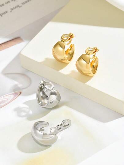 2pcs Simple Smooth C-Shaped Ear Clip, Vintage Unique Geometric Earrings For Women Without Pierced Ears - Clip - View 1