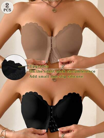 2pcs Women's Multicolor Bras, Front Closure Ruffled Push-Up Removable Padded Underwear - Multicolor - View 1