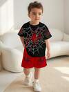 SHEIN Young Boy Spider Print T-Shirt And Shorts Set, Casual,Kids