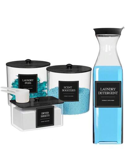 3+1 Pack Laundry Pods Containers & Dryer Sheet Holder & Laundry Detergent Dispenser, Laundry Room Organization And Storage Jars With Lids, Labels And Scoops For Scent Booster, Powder, Pods - Multicolor - View 1
