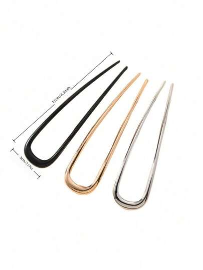 3/2/1pcs Set Large Elegant Gold U-Shaped Metal Hair Clips - Suitable For Thick Long Hair, Ladies French Hair Clips, Hair Bun Extender, Hair Styling Clips, Hair Accessories - Multicolor - View 1