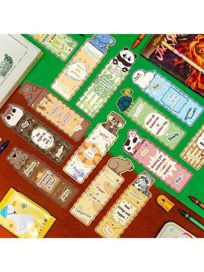 30pcs/Set Cartoon Animal Themed Minimalist Bookmarks, Creative Stationery Supplies, Random Assortment - Multicolor - View 1