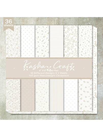 36 ark 6 tums mjölkte blommönster scrapbookingpapper, lämpligt för bullet journals, collage, kort, scrapbooks och hantverk, för skolmaterial, tillbaka till skolan - Beige - Visa 6