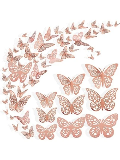36 st/set papper 3D ihåliga fjärilsklistermärken, modern rumsinredning kreativ fjärilsklistermärke för hemmet, klistermärken, väggdekaler, vinyldekaler för heminredning, vårdekorationsartiklar förnya ditt hem, rama dekorationsklistermärken presenter födelsedag examen - Rosa Guld - Visa 1
