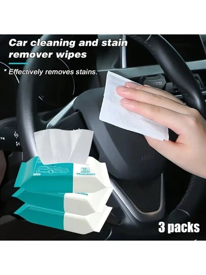 3 st bilrengöringsservetter - tvättmedel, skonsamma mot händerna, icke-slipande pappersmaterial för bilvård, biltillbehör - Vitt - Visa 5