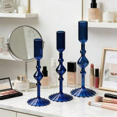 3pcs Nordic Style High Foot Glass Candle Holders, Elegant Candle Holders For Living Room Decor, Home Party Decoration