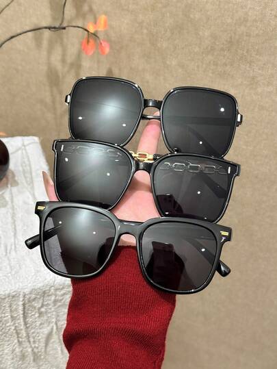 3pcs Luxury Black Square Glasses Set, Multiple Frame Styles Accented With Delicate Metal Chain & Rivets, Suitable For Photoshoots, Beach Vacations, Parties, A High-Quality & Practical Gift - Multicolor - View 1