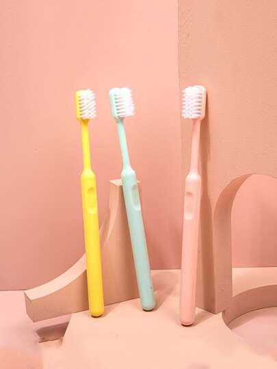 3pcs Plain Soft Toothbrush Set - Multicolor - View 1