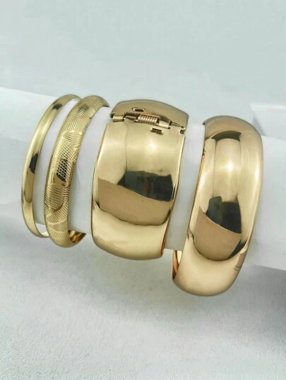 3pcs Set/2pcs Set Retro Simple Punk Big & Chunky Bangle Bracelets For Women, Timeless Beauty Gold Cuff Bangle, Everyday Wear Jewelry Accessory. (Metal Surface May Have Minor Scratches) - Spring Closure Metal Bracelet Set - View 16
