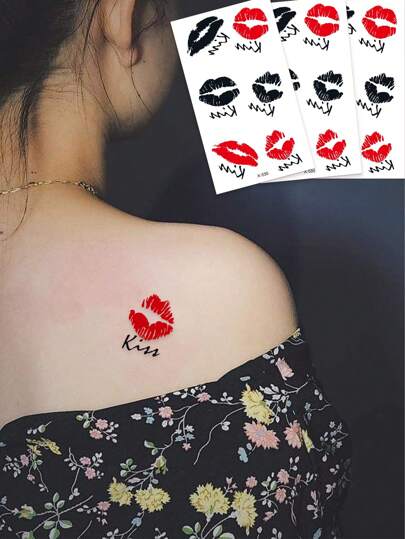 3pcs Temporary Heart And Lip Tattoos, Romantic Design For Body Parts - Multicolor - View 1