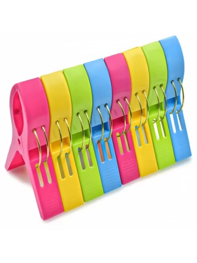 4/8/12pcs Plastic Windproof Clips, Used For Drying Clothes, Sheets And Quilts - Large, Sturdy Design With Spring-Loaded Handles, Clothespins For Outdoor Balcony Line-Drying, Indoor Laundry Rooms, Dorms, And Hotels; Crafted From Durable Lightweight Plastic With Reinforced Jaws For Secure Grip On Towels, Garments, Bedding; Weather-Resistant, Rust-Free, Easy To Clean; Multi-Pack Convenience For Home, Travel And Various Drying Setups With Smooth Edges To Prevent Snags - Multicolor - View 1