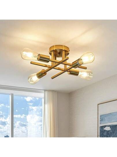 4-Head Iron Branch Ceiling Light, Minimalist Modern Design For Bedroom, Hallway, Corridor, Dining Room, Living Room