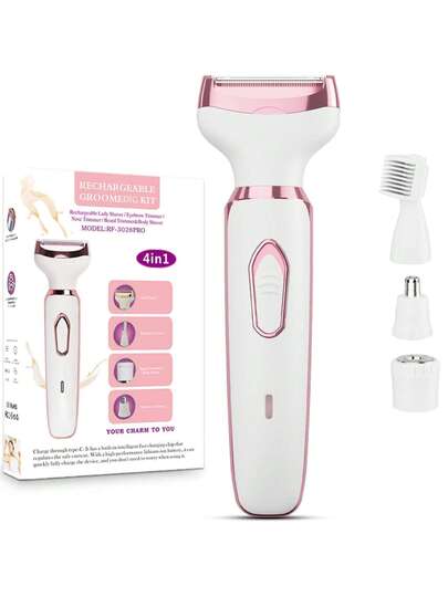 4-In-1 Portable Women Electric Shaver, For Eyebrow, Temple, Underarm And Leg Hair Removal, USB Rechargeable - Multicolor - View 1