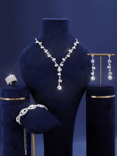 4 Pieces/Set Of Elegant Crystal Rhinestone Jewelry Sets - Earrings And Necklaces, Bracelets - Suitable For Women's Daily Wear, Weddings, Parties, Etc. - White - View 15
