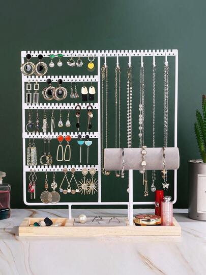 4-Tier Jewelry Organizer Rack, Available In White/Black/Gold, Necklace, Earring, Bracelet, Ring Display Stand, Suitable For Bracelets, Earrings, Rings, Birthday Decor, New Year, Valentine's Day Gift - White B - View 1