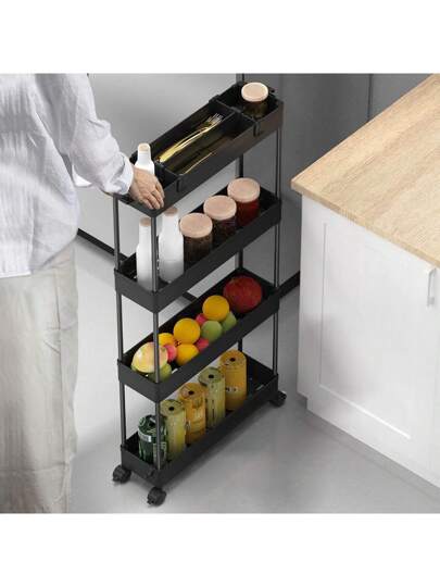 [Flexible 4 Tier Storage Cart]- The 4-tier slim storage cart is 4.75 in design which can be used in tight spaces in your home for storage. Suitable for closets, kitchens, bathrooms, garages, laundry rooms, offices or in-between your washer and dryer. [Movable Storage Solution & Side Hoop]- 4 easy-glide, durable wheels make the storage cart smooth and convenient to pull in and out from narrow spaces. And 4 side hoops provide more spaces for you storage. It also comes with 2 wheels with brakes, making the storage cart stable when stationary. [Easy To Install]- The shelving unit organizer made form plastic, durable and stable.Quick and easy snap together assembly, easy care. [Long Lasting Durability]- The plastic surface blends with office decor, suitable for offices, mailrooms, cubicles, classrooms, dorm rooms and libraries. [2 or 3 Shelves Adjustable]- The rolling storage cart can be adjusted to 2 or 3 shelves for bathroom and kitchen countertops without the casters, so wide range of applications