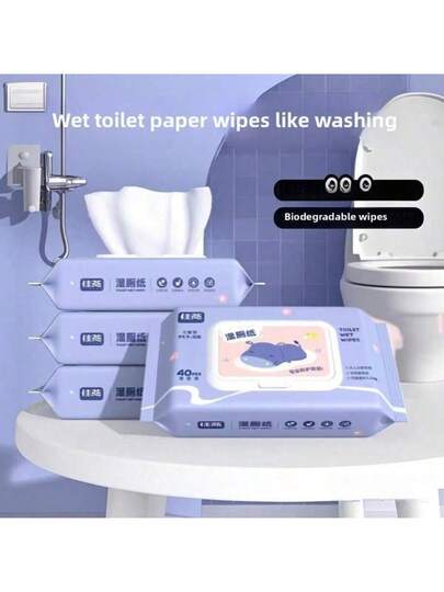 40 Sheets Flushable Wet Toilet Paper, Individually Packaged, Large Pack Wet Wipes, Antibacterial Toilet Cleaning Tissue For Cleaning - Seahorse Color Packaging 40 Sheets - View 1