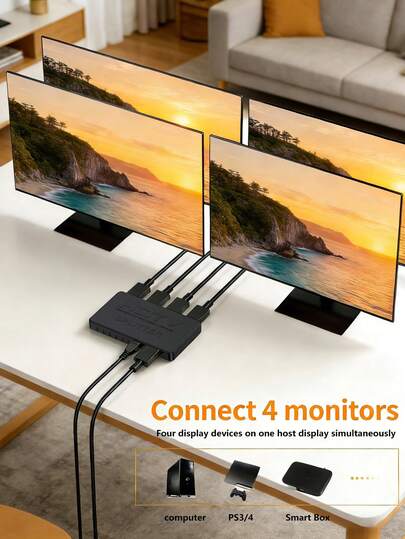 4K Ultra HD HDTV Splitter 1 Input 4 Outputs, 1 To 4 Screen Splitter, Multi-Screen Extender For TV, Computer And Monitor - Black - View 8
