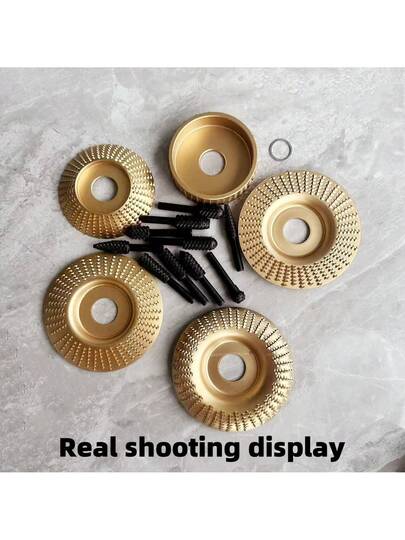 4pcs/5pcs/6pcs/11pcs/16pcs Rotary Rasp Set For Woodworking & Wood Carving, Fit 22mm To 16mm Angle Grinder - Gold - View 1