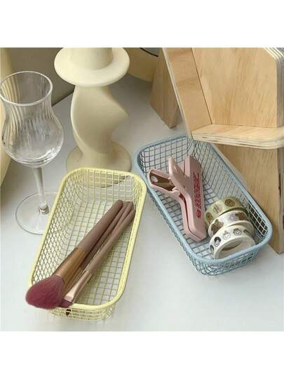 4pcs Cream-Color Iron Wire Storage Baskets, Multi-Pack, Multi-Color Combination Storage, Multifunctional Desktop Office & Student Supplies Organizer Baskets, Desktop Miscellaneous Items Organizer Baskets, Iron Wire Desk Organizer - Multicolor - View 11