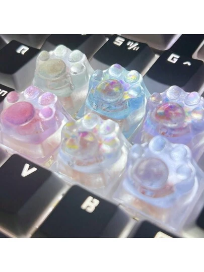 4pcs Handmade Cute Cat Paw Keycaps, Suitable For Customized Mechanical Keyboards - ABS Resin, Business Style, OEM Profile - Multicolor - View 1