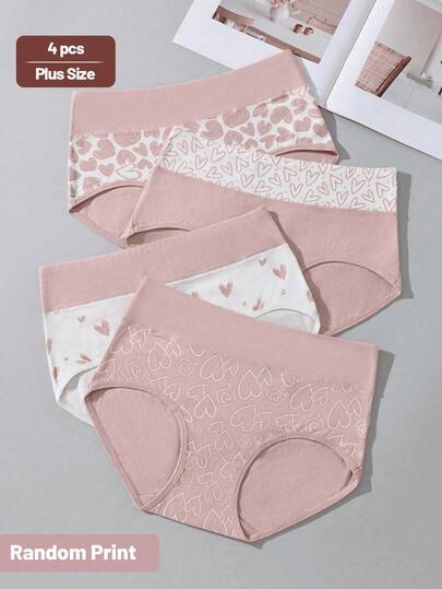 4pcs/Pack Women's Soft & Comfortable Heart Print Plus Size High Waist Briefs - Multicolor - View 1