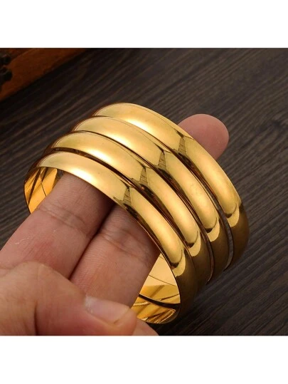 4pcs/Set 65MM Golden Color Dubai Style Copper Bangle Bracelets, African Jewelry Bangle Bracelets, Women's Birthday Jewelry Gift - Yellow Gold - View 1