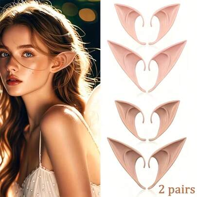 4pcs/Set Fairy Ear Accessories, Soft Pointed Elf Ears, Vampire Makeup Ball Earrings, Suitable For Halloween/Christmas Party Costume Role Play Props