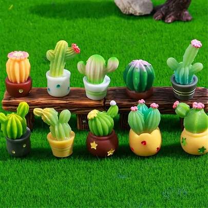 5/10PCS Mini Artificial Cactus, Resin Cute Small Figurine Decor For Home Desktop, Micro Landscape, Fairy Garden, DIY Bonsai, Car Dashboard & Festival Gift Decoration
