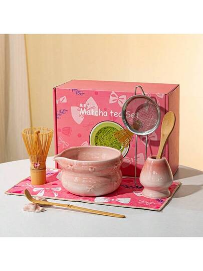 5/7/8pcs Japanese Matcha Whisk Set, Butterfly & Heart Textured, Pink Gift Box/Black Gift Box, Suitable For Personal Use, Valentine's Day, Christmas, Thanksgiving, Graduation Gifts - Multicolor - View 1