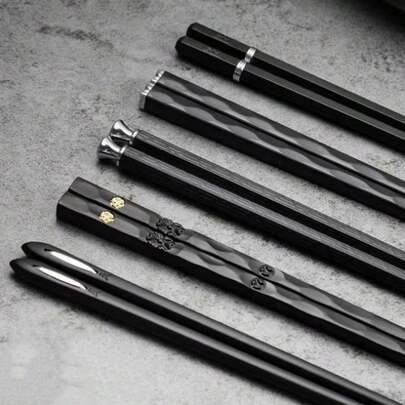 5 Pairs Reusable Black & Silver Chopstick Set, Non-Slip Sushi Chopsticks, Suitable For 5 People, Ideal For Holidays, Parties, Weddings, Hotels, Restaurants And Gifts - Black and Silver Mixed Chopsticks - 5 Pairs - View 1