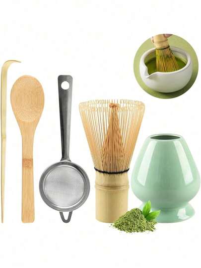 5-delat Matcha-vispset - Matcha-skål och bambu-matcha-visp, tesil, sked, tesked, sil, vispställ. Det perfekta matcha-startsetet, lämpligt för matcha-teceremonier, matchaset. Infusioner - Multifärgad - Visa 1
