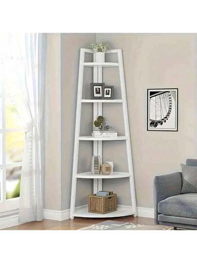 6. 5-Tier Scandinavian Style Mini Corner Shelf - Fashionable White, Lightweight PP Material, Multi-Functional Home, Office And Balcony Storage, Suitable For Books, Toys And Decor, Space-Saving Design, Vertical Bookshelf