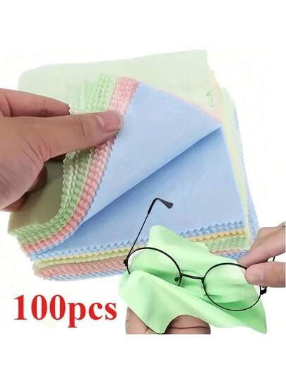 50/100pcs Reusable Microfiber Cleaning Cloths For Glasses, Camera Lenses & Smartphone Screens - Thick Soft Unscented Wipes, Scratch-Free, Random Colors, Glasses Cleaner - Multicolor - View 1