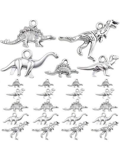 50/100pcs Vintage Silver Dinosaur Pendant Set - Alloy Animal Pendants, Suitable For DIY Jewelry, Necklace And Bracelet Making - Silver - View 1