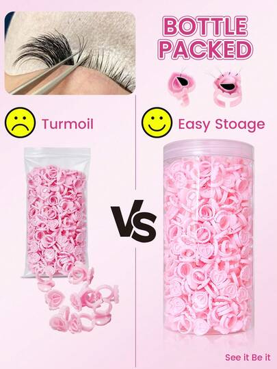 50/200/400pcs/Bottle Heart-Shaped Eyelash Glue Rings - Includes Eyelash Glue Holder And Fan Cup, Professional Eyelash Extension Supplies