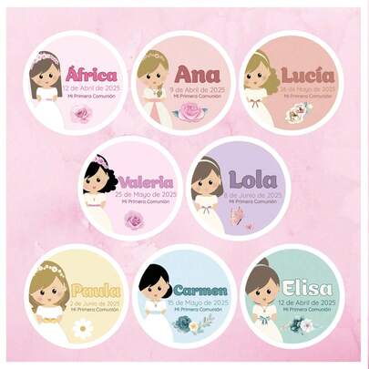 50pcs Personalized Labels For Girls' First Holy Communion. 24pcs Sticker Or Card Set. Decorative Uses: Guest Gifts, Candy Bags And Lollipops.