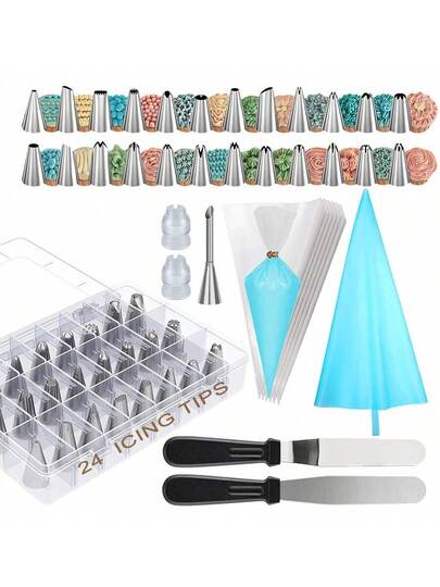 50 st. tårtdekorationsverktyg - spritsmunstycke för glasyr, 20 st. engångsspritspåsar och 1 st. silikonspritspåse, spatel, smör, frosting, ost, bröd, deg, bakverk, dessert DIY-köksprylar, perfekt present till bakälskare - Multifärgad - Visa 5