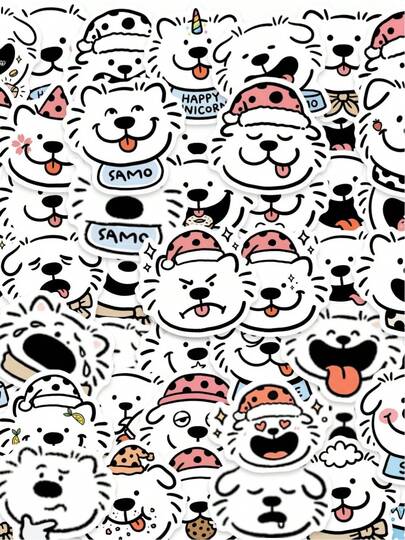 50pcs Cute Cartoon Puppy Stickers, Adorable Pet Expression, Healing Stickers Suitable For Laptop, Water Bottle, Office Desk, Home, Diary Decoration