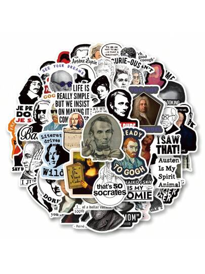 50pcs/Pack Interesting Celebrity Meme Themed Doodle Sticker, Cute Cartoon Fun Aesthetic Sticker For Scrapbook, Self-Adhesive Seal Stationery, Cards, Envelopes, Guitars, Instruments Decor, Great Gift For, Christmas, Teens Party, Rewards, Motivation - Black - View 9