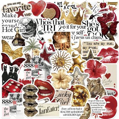 50 st. röda, guldiga och silverfärgade lyckoklistermärken, estetiska klistermärken, Y2K-klistermärken, Y2K-kärnklistermärken, Y2K-presenter, retroklistermärken, 90-talsklistermärken, alla hjärtans dag-klistermärken, vattentäta vinylklistermärken för kuvert, vattenflaskor, datorer, bärbara datorer, telefoner, resväskor, anteckningsböcker, kylskåp etc. - G - Visa 6