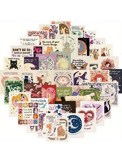 50pcs Unique And Inspirational Doodle Stickers, Suitable For Decorating Water Bottles, Helmets, Luggage, Bicycles, Skateboards, And More - Multicolor - View 1