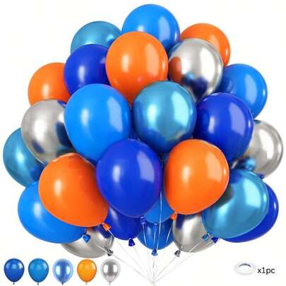 51pcs/26pcs Blue Balloon Set, Balloon Ribbons/Metallic Light Blue, Orange, Silver Balloons, Neutral Bride Gift Theme Party Decorations, Suitable For Anniversary/Birthday Party/Bachelor/Gender Reveal Party, Gift - Multicolor - View 1