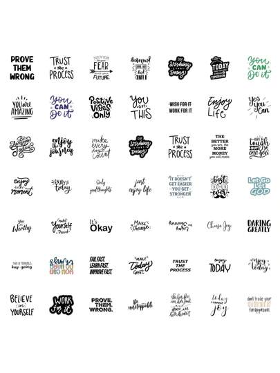 52pcs Minimalist Black & White Motivational Quote Stickers, Suitable For Decorating Skateboard, Computer, Desk, DIY,Stickers,Motivational Stickers,Quote Stickers,Stickers,Motivational Stickers,Quote Stickers,Bookish Stickers,Blank Stickers,Quotes Sticker - Multicolor - View 1