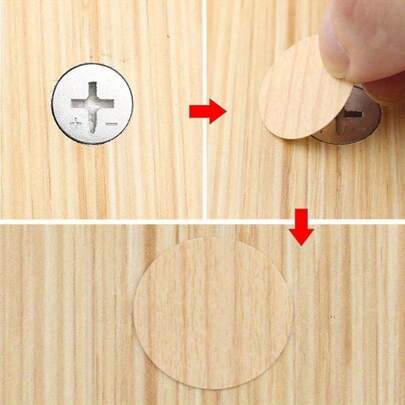54 st klistermärken för skruvhål för möbler - självhäftande dekorativa PVC-skruvlock för reparation av skåphyllor, 21 mm dolda skruvhuvuden i plast, träådringsstruktur - Multifärgad - Visa 3