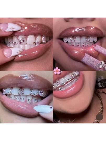 56 st. fjärils- och strassfärgade tandsmyckenset, söta Y2K superglänsande tandtillbehör för vardag, fest, högtid, unisex (inget lim ingår) - 56 delar rosa fjäril - Visa 6