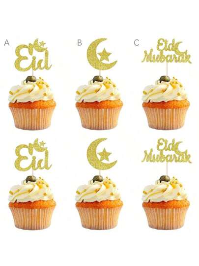 5pcs/10pcs/20pcs Gold Eid Mubarak Cupcake Toppers, Suitable For Eid, Ramadan Party Cupcake Decorations - Gold - View 6