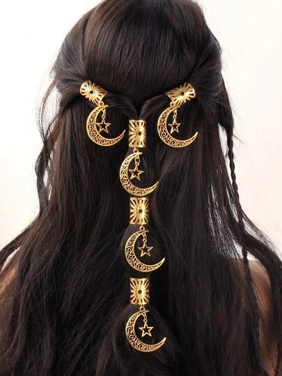 5pcs Kids Hair Accessories Set - Star & Moon Design Hair Clips, Suitable For Festivals, Parties, Daily Wear, Pendants, Gifts, Ramadan - Gold - View 5